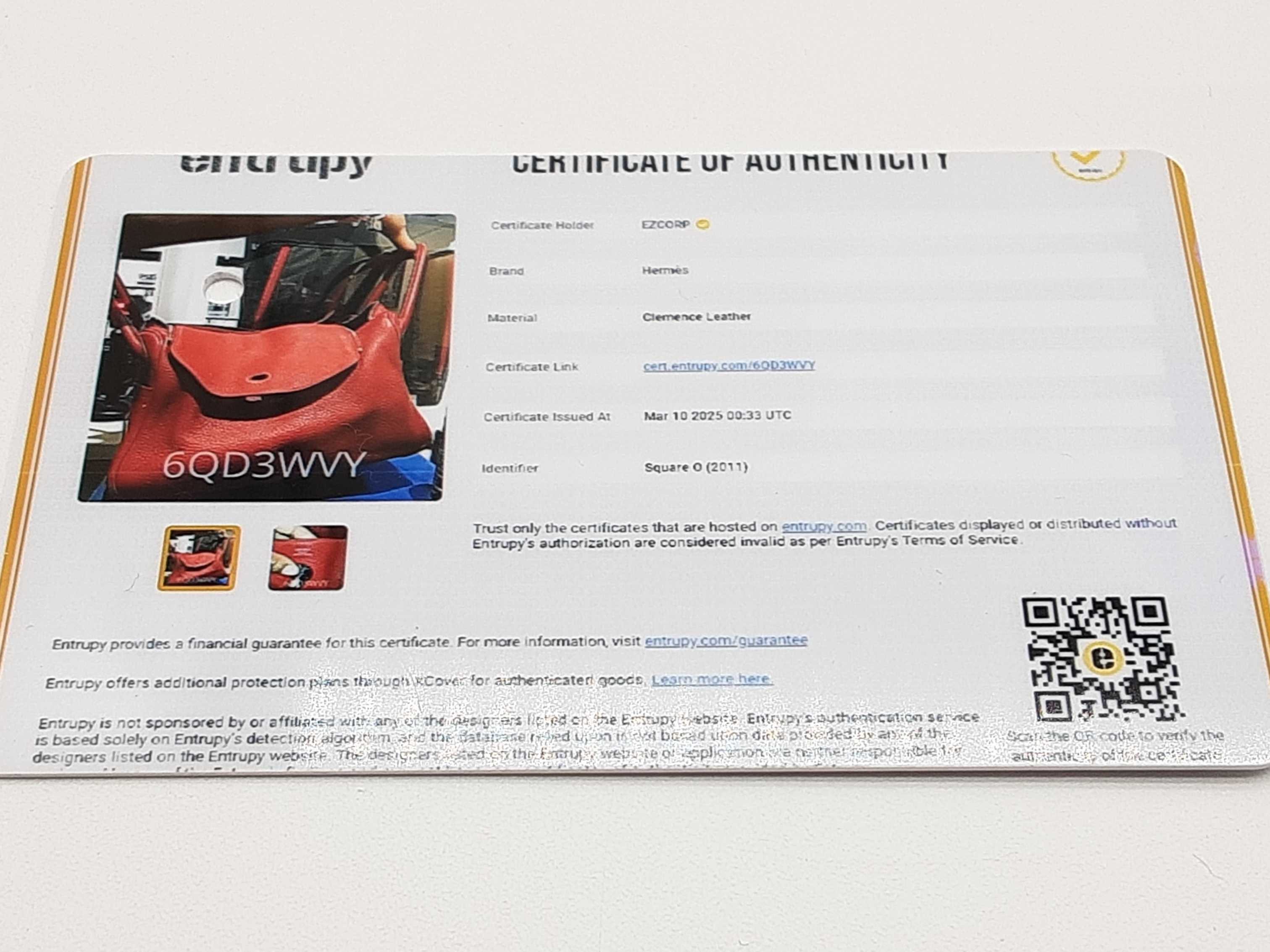 Entrupy Certificate Card