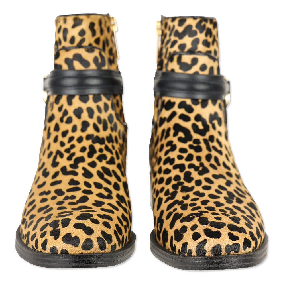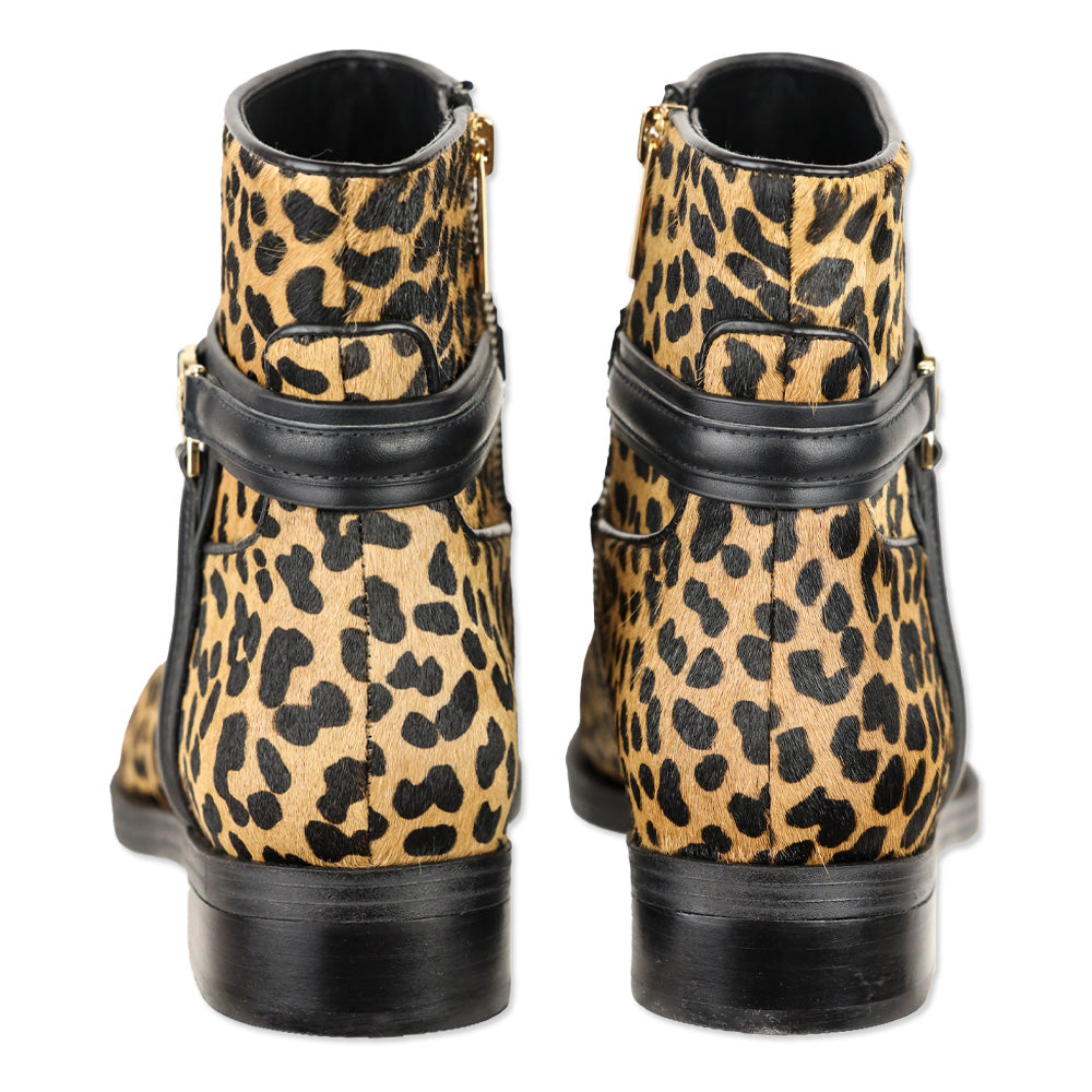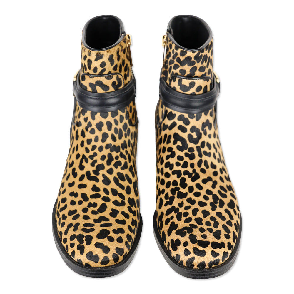 - Details: Leopard-print, Almond toe, Side zippers, Gold-tone logo charm