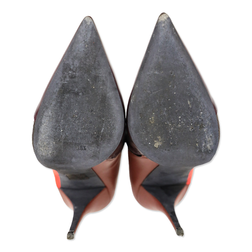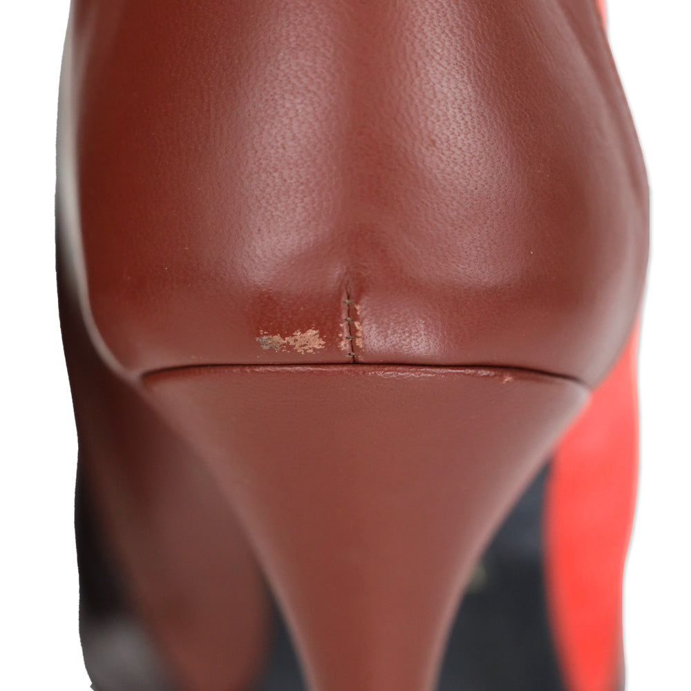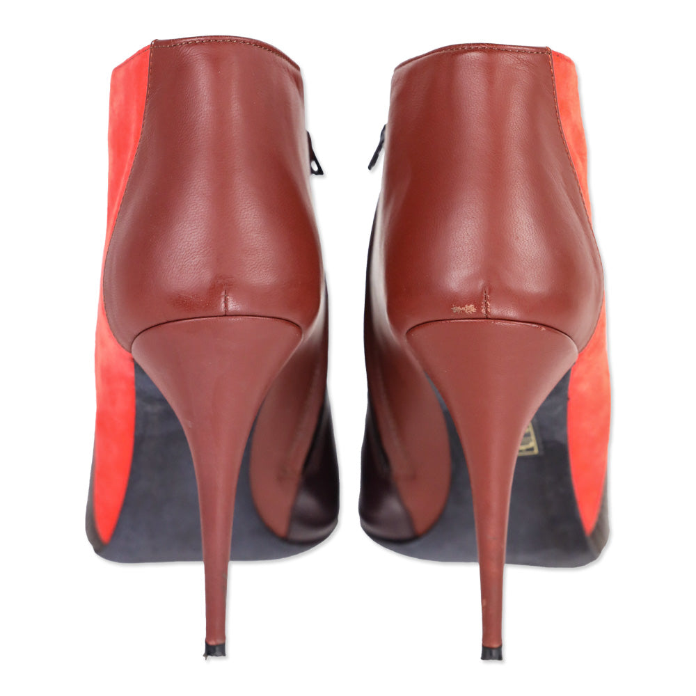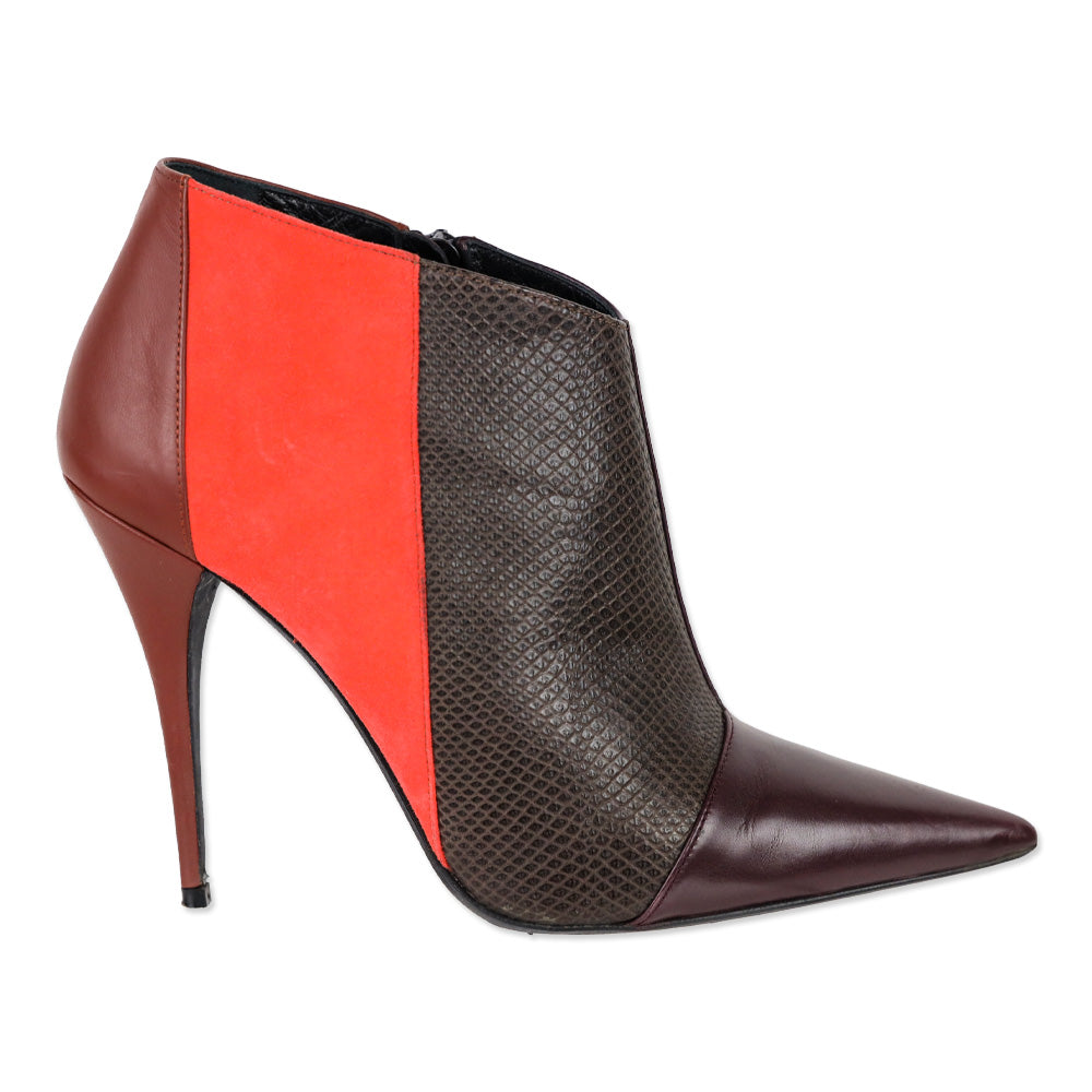 Narciso Rodriguez Colorblock Booties showcase artistic sophistication with their vibrant burnt orange, burgundy, and snakeskin leather panels, creating a wearable art piece that elevates minimalist ensembles and monochromatic outfits. These 4.25' stiletto boots blend architectural precision with bold color theory, making them perfect for fashion exhibitions and statement evening wear.
