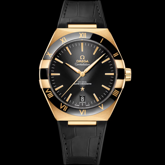 Omega Constellation 131.63.41.21.01.001, 41 mm. The watch has Black Dial. The Case is Yellow gold w/ 8901 Movement, 60 hours power reserve. The leather strap. The Water-resistant is up to 50 m. The Watch comes complete with Omega Papers & Box. Covered with Omega 5-Year Warranty.