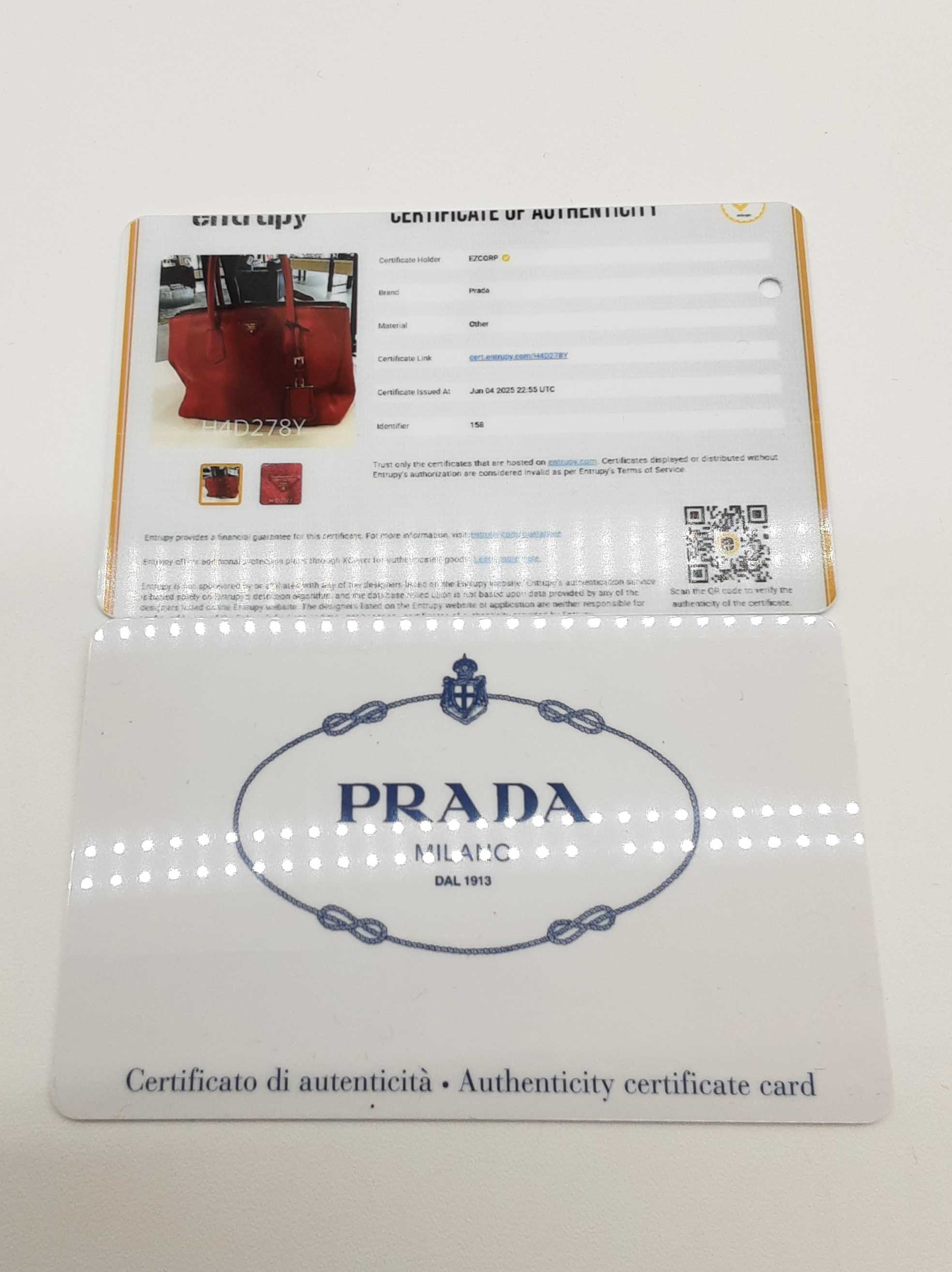 Entrupy Certificate Card, Prada Authenticity Certificate Card, Strap, Bag Tag, Information Booklet