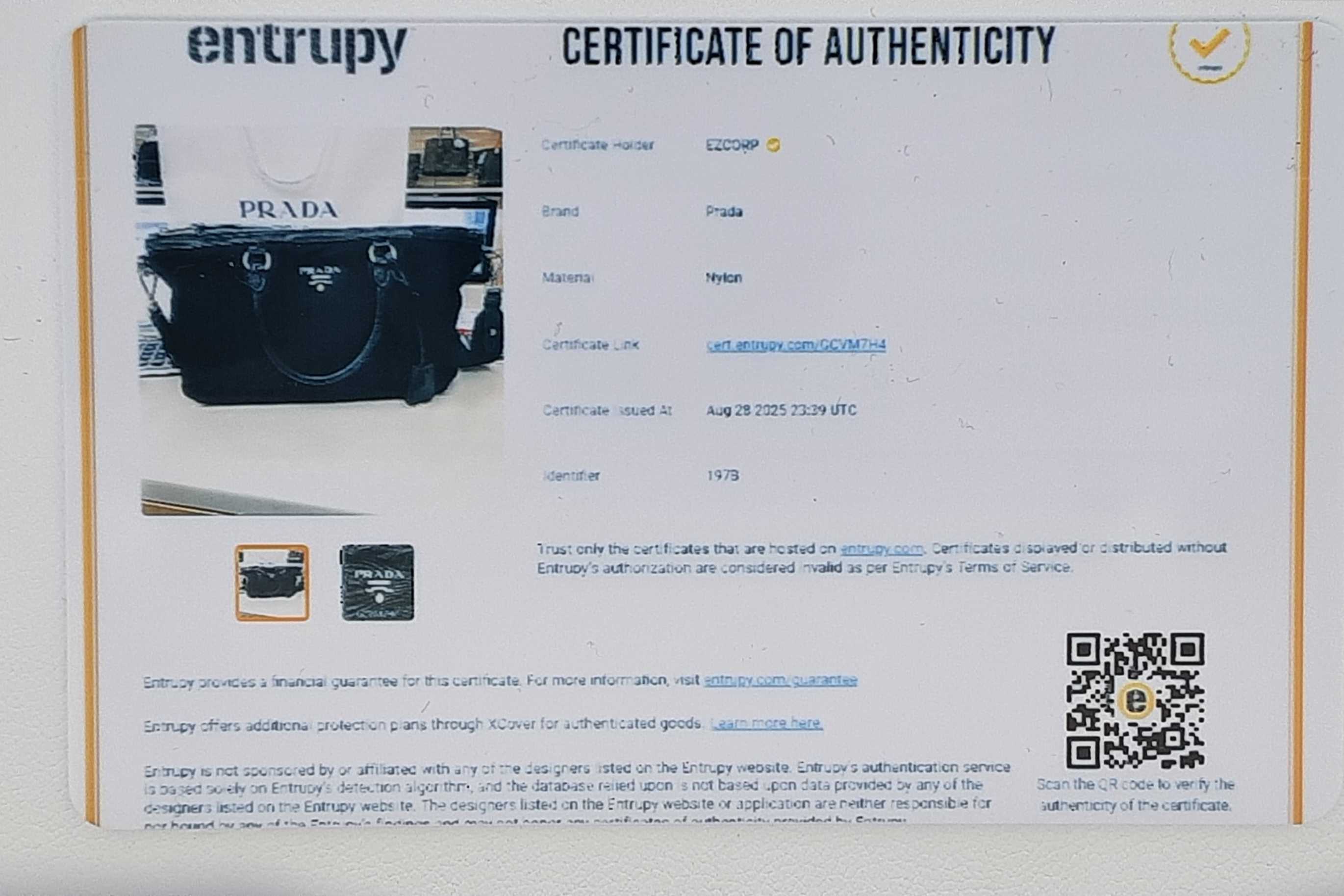 Prada Authenticity Card, Entrupy Certificate Card, Dust Bag, Prada Product Inserts