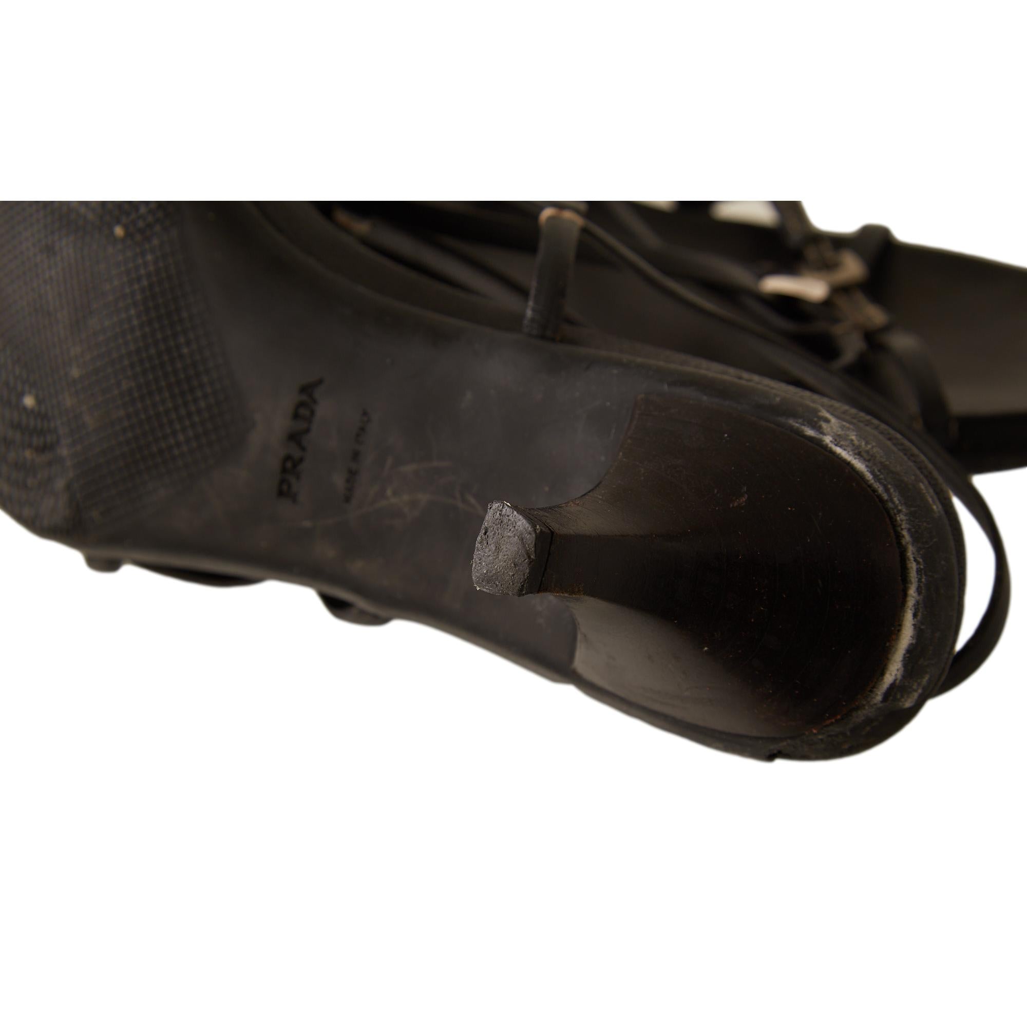Prada Black Contrast Stitch Buckle Heels