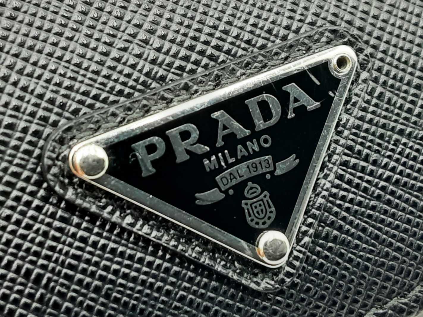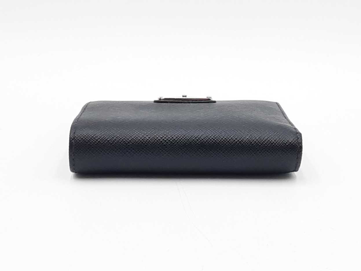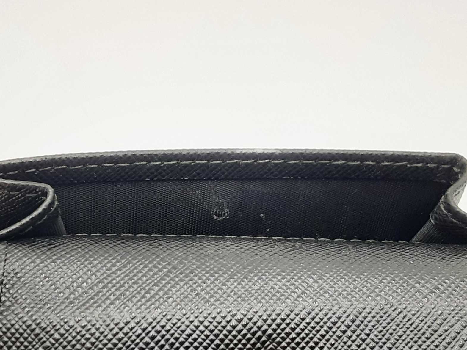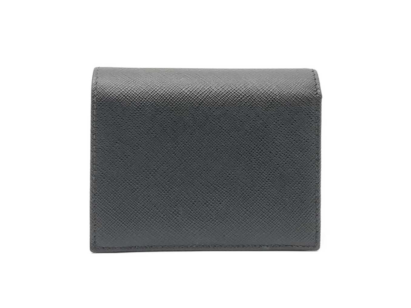 144030017692Prada Black Saffiano Leather Compact Bifold Wallet. Silver-Tone Hardware. Height 3.5 x Length 4.5 x Width 1 inches, approximately. Great Pre-Owned Condition. Scratches on hardware. Small discoloration in coin pocket. Entrupy Certificate # KV4G86V
