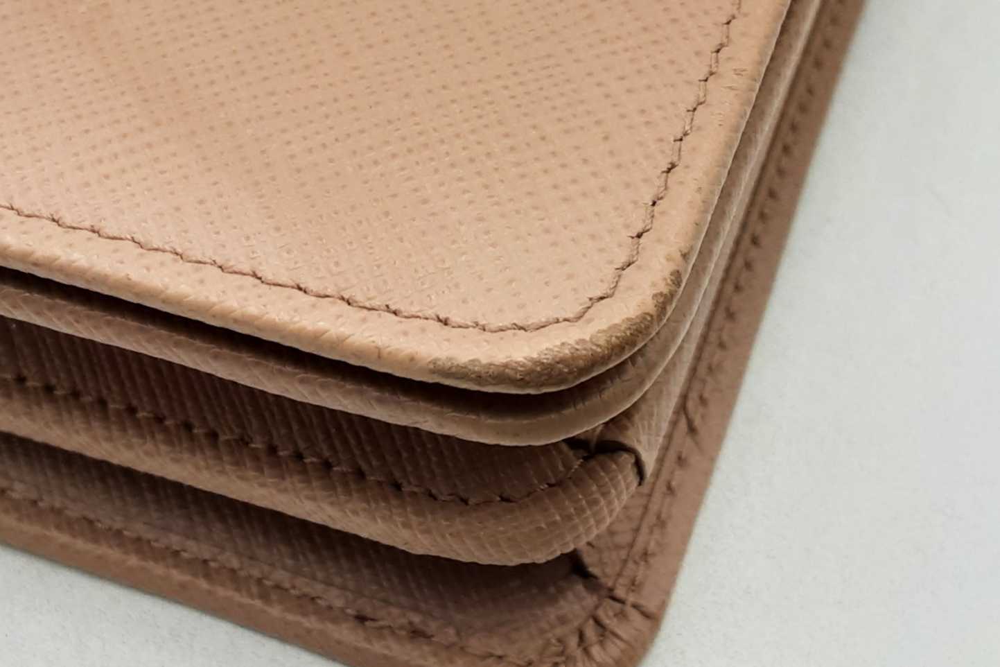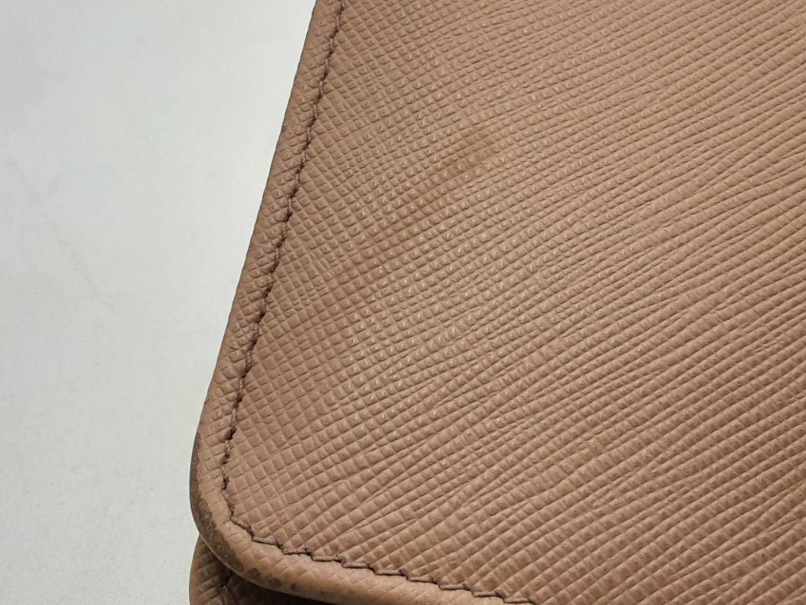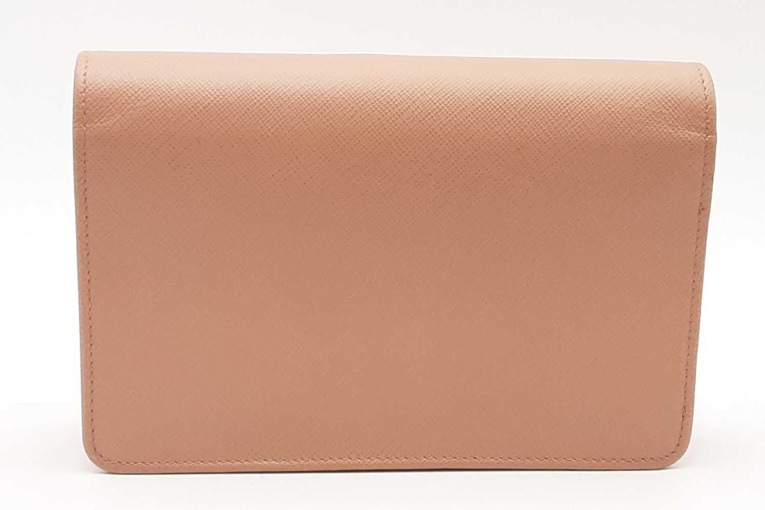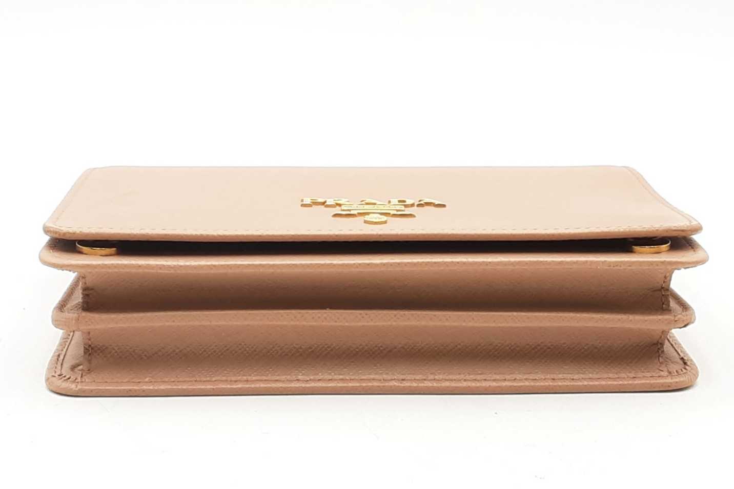 144010054720Prada Saffiano Leather Wallet On Chain Crossbody. Gold-Tone Hardware. Approximate measurements: Height 4.5 IN X Length 7 IN X Width 1.5 IN X Drop 23 IN. Good Pre-Owned Condition. Heavy and deep scratches on hardware with discoloration as well especially on the logo hardware. Damage on the corners as shown in photos. Discoloration spots on the exterior. Wear on the interior zipper pull. Dark marks inside the bag. Entrupy Certificate #3JDY3GX