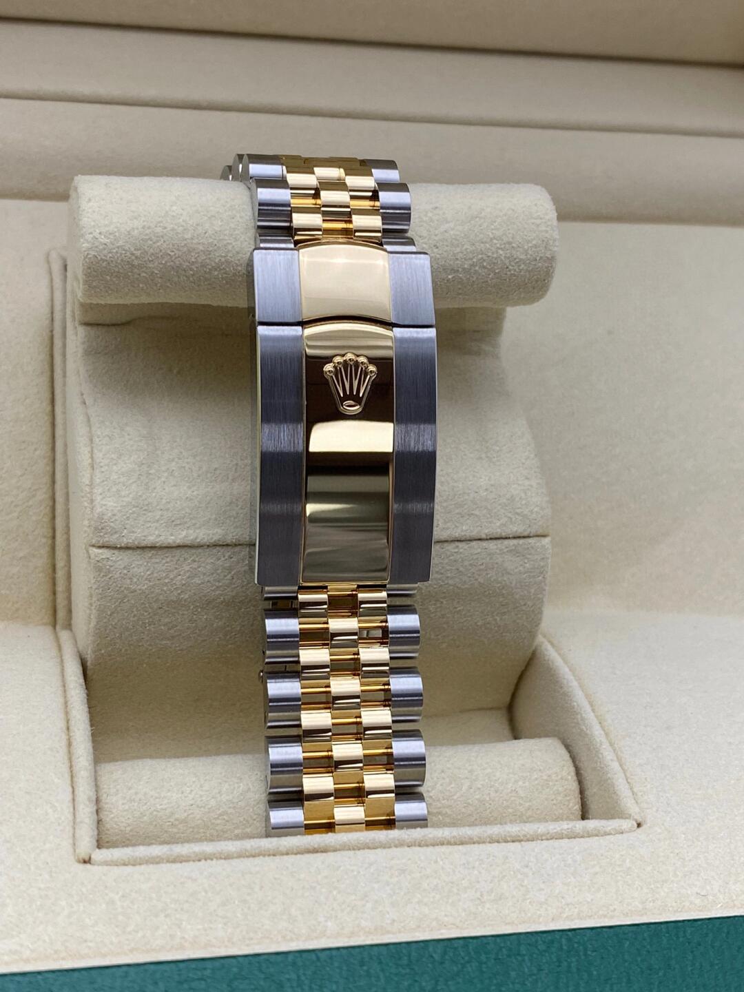 - Polished Solid 18k Yellow Gold with Brushed 904L Oystersteel Stainless Steel Jubilee Bracelet