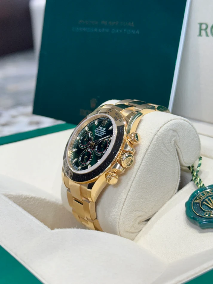 • Rolex Cosmograph Daytona Oyster Yellow Gold Green Dial 116508-0013 Replica