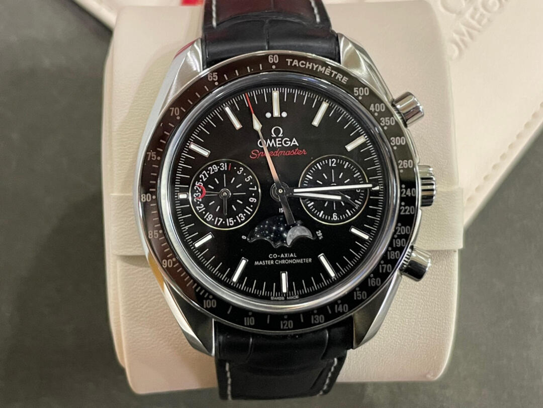 The Speedmaster/Omega Speedmaster is one of Omega's iconic timepieces and has participated in six moon landings. This new, further evolved moon phase model features realistic moon features.