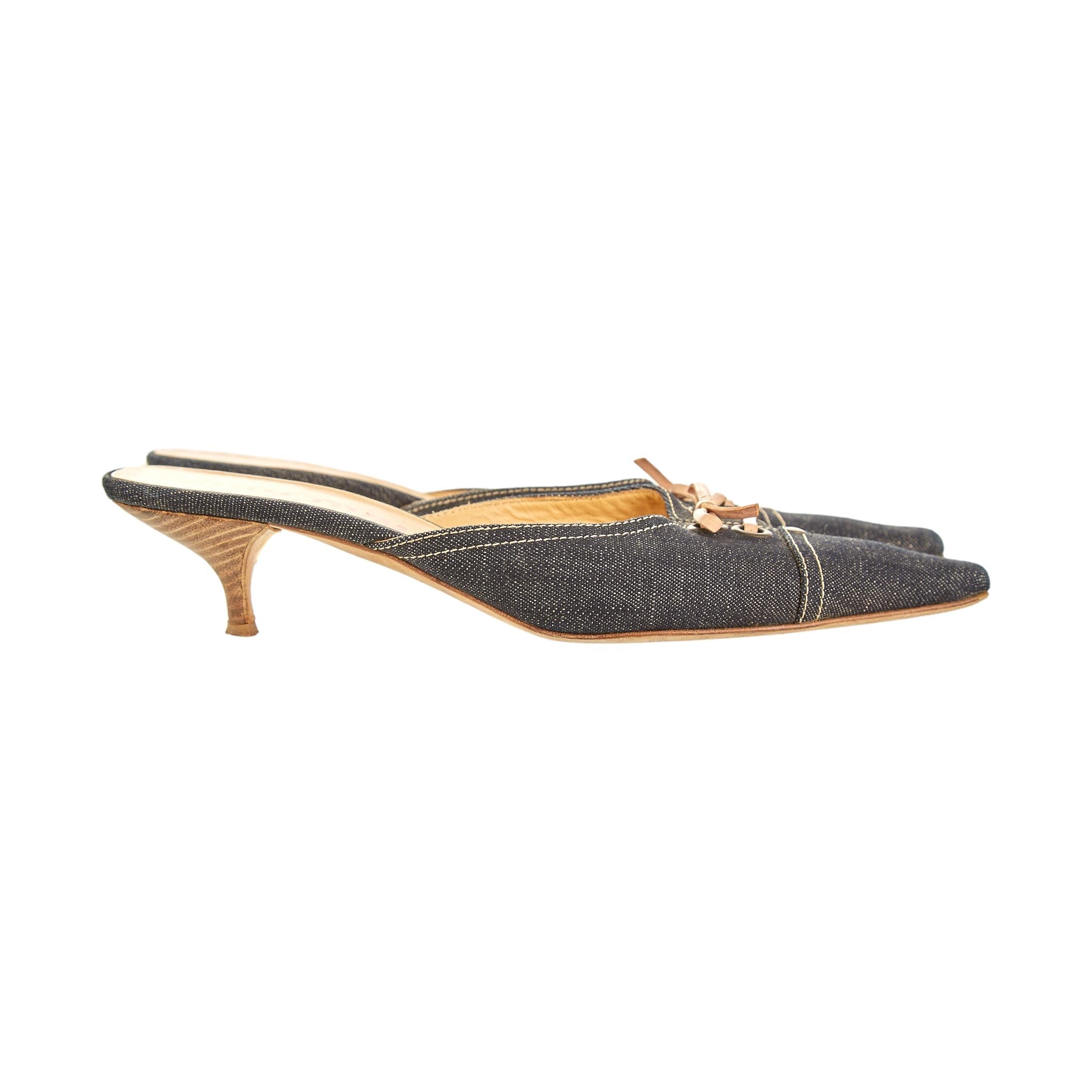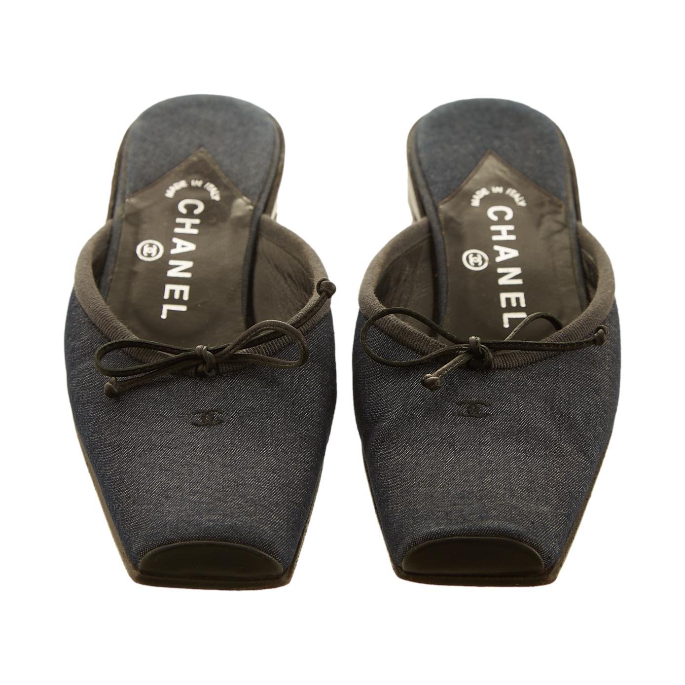 Chanel Denim Bow Kitten Heels