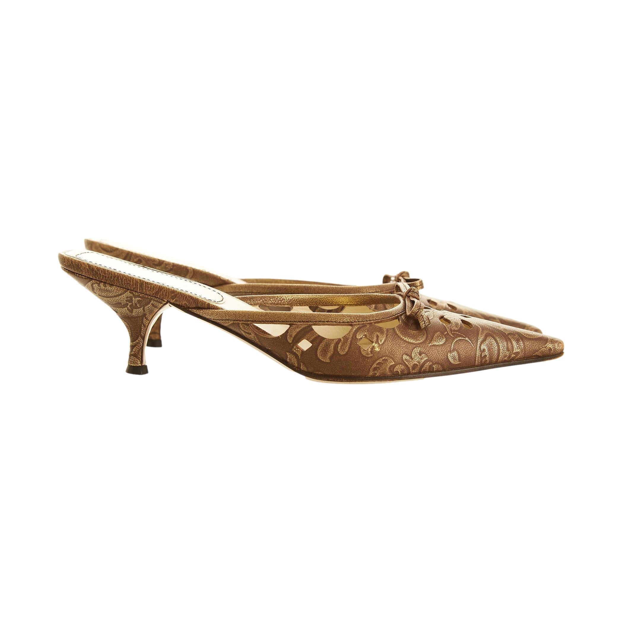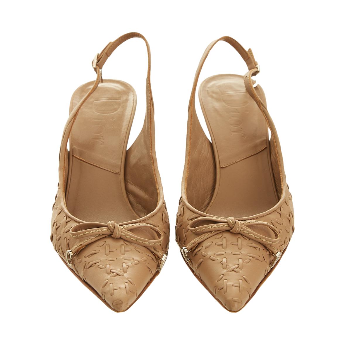 Dior Tan Logo Bow Kitten Heels