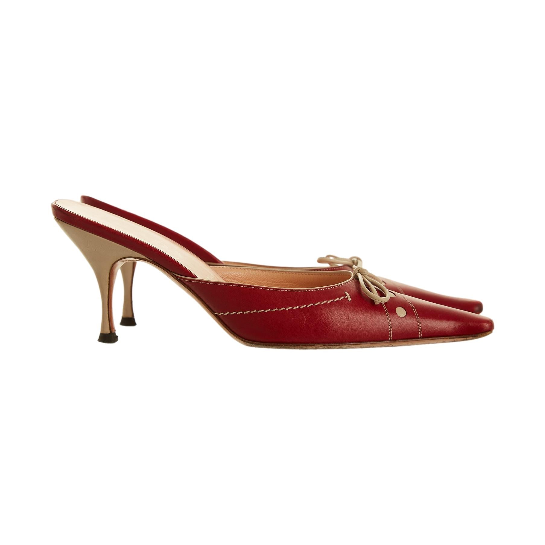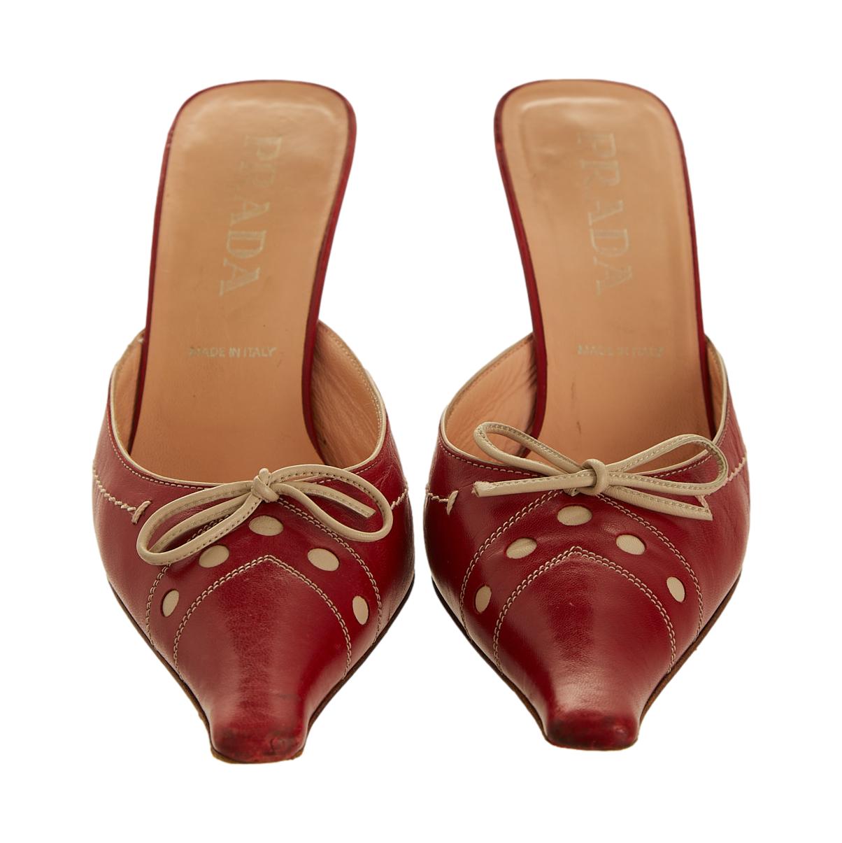 Prada Red Stitched Kitten Heels