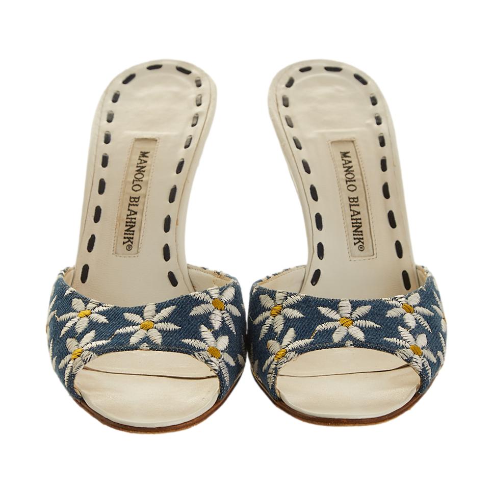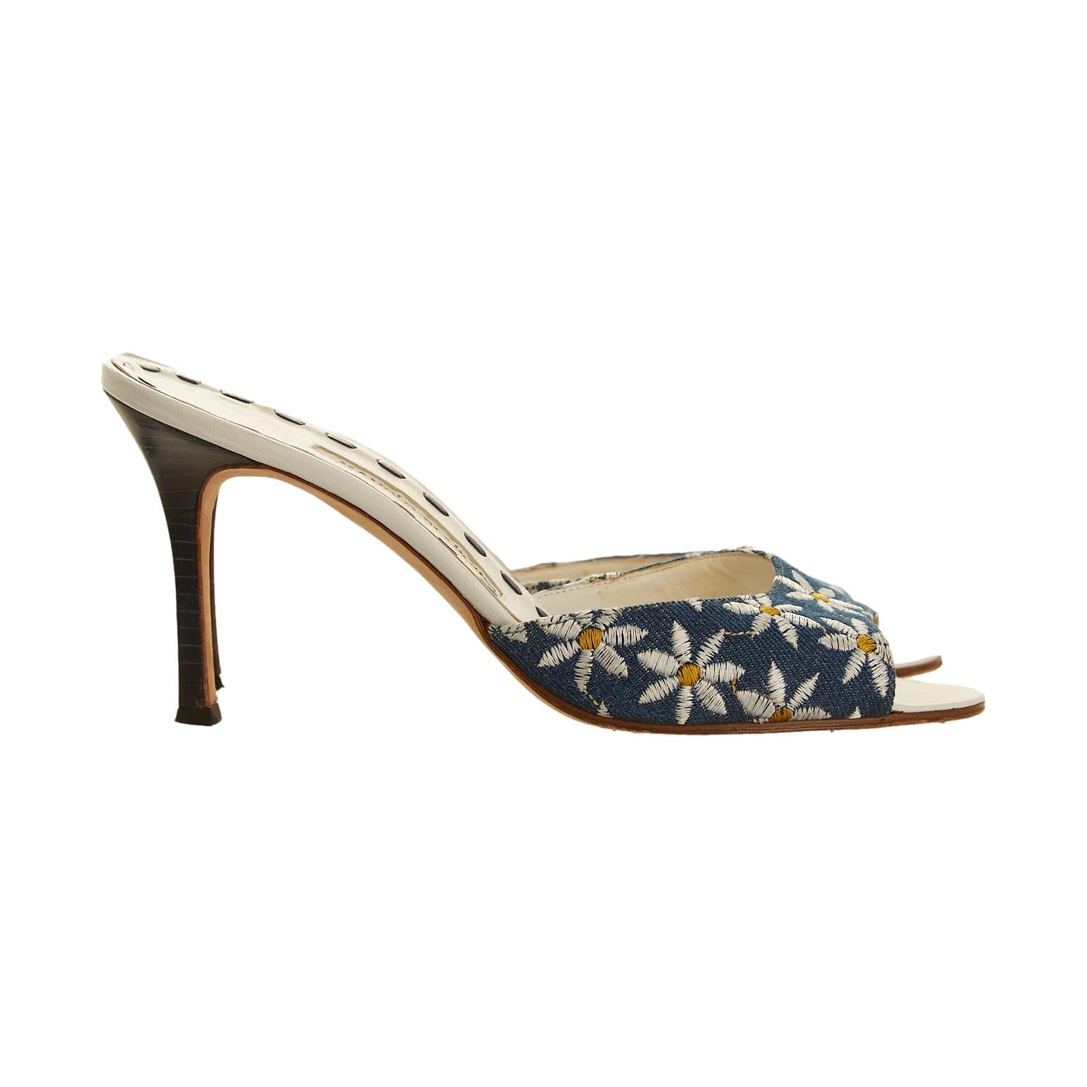 Manolo Blahnik Denim Daisy Heels