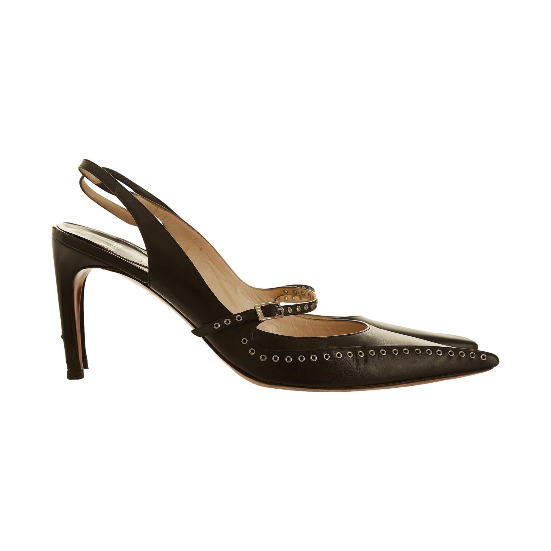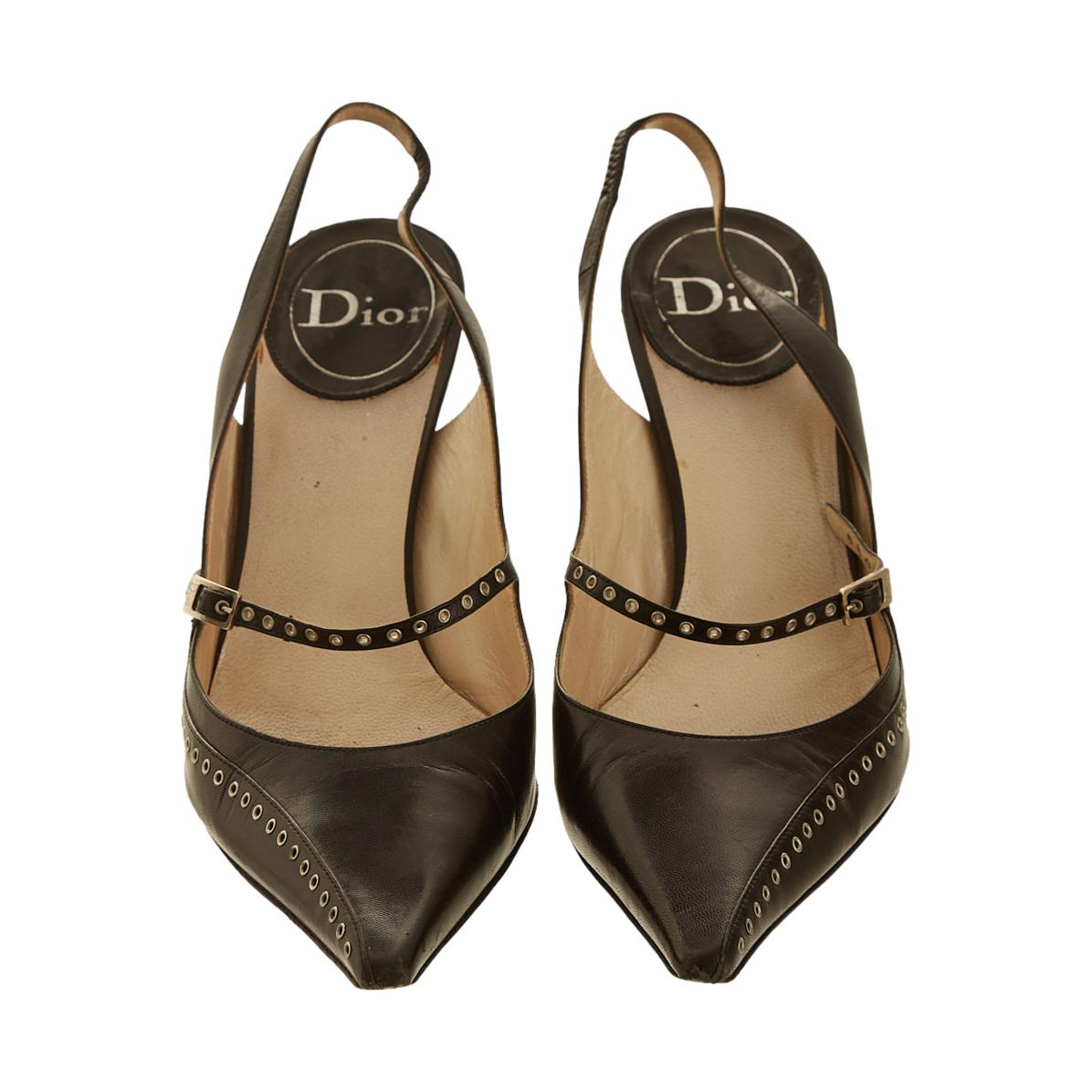 Dior Black Grommet Kitten Heels