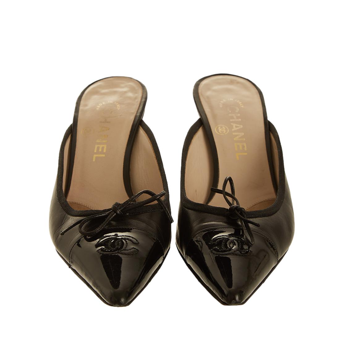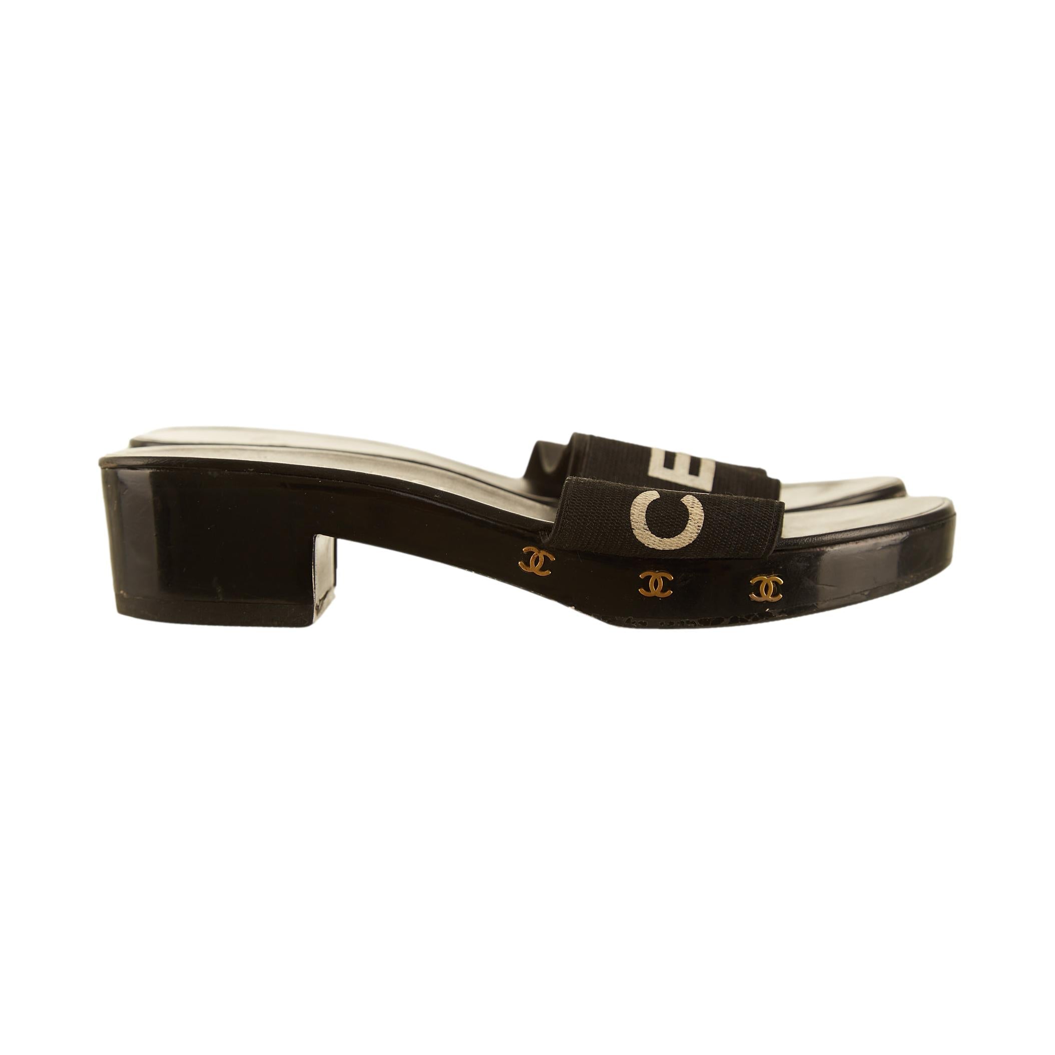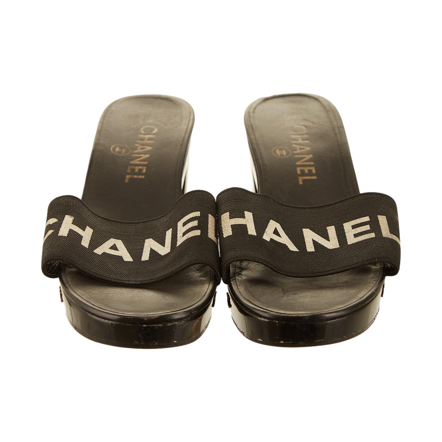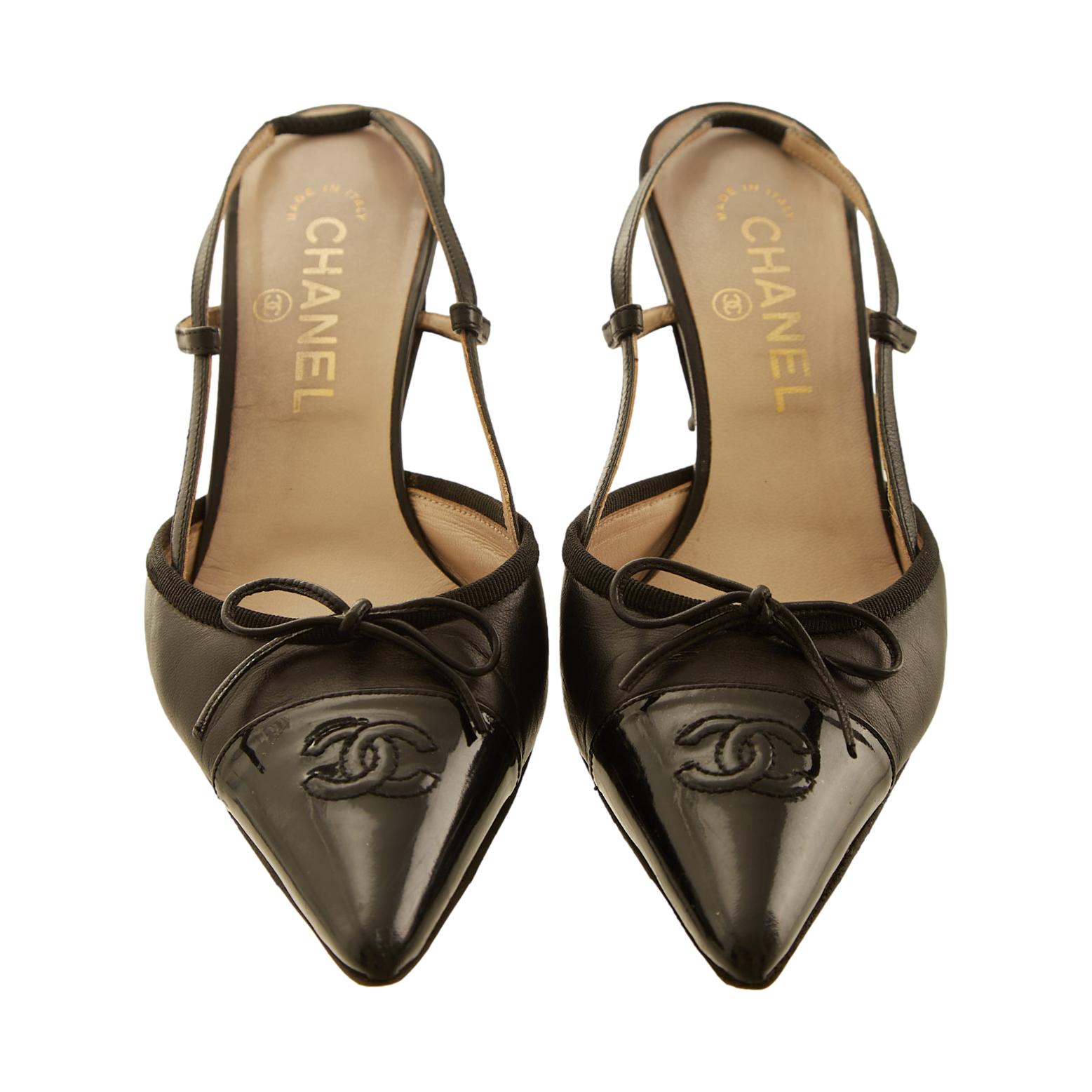 Chanel Black Logo Slingback Heels