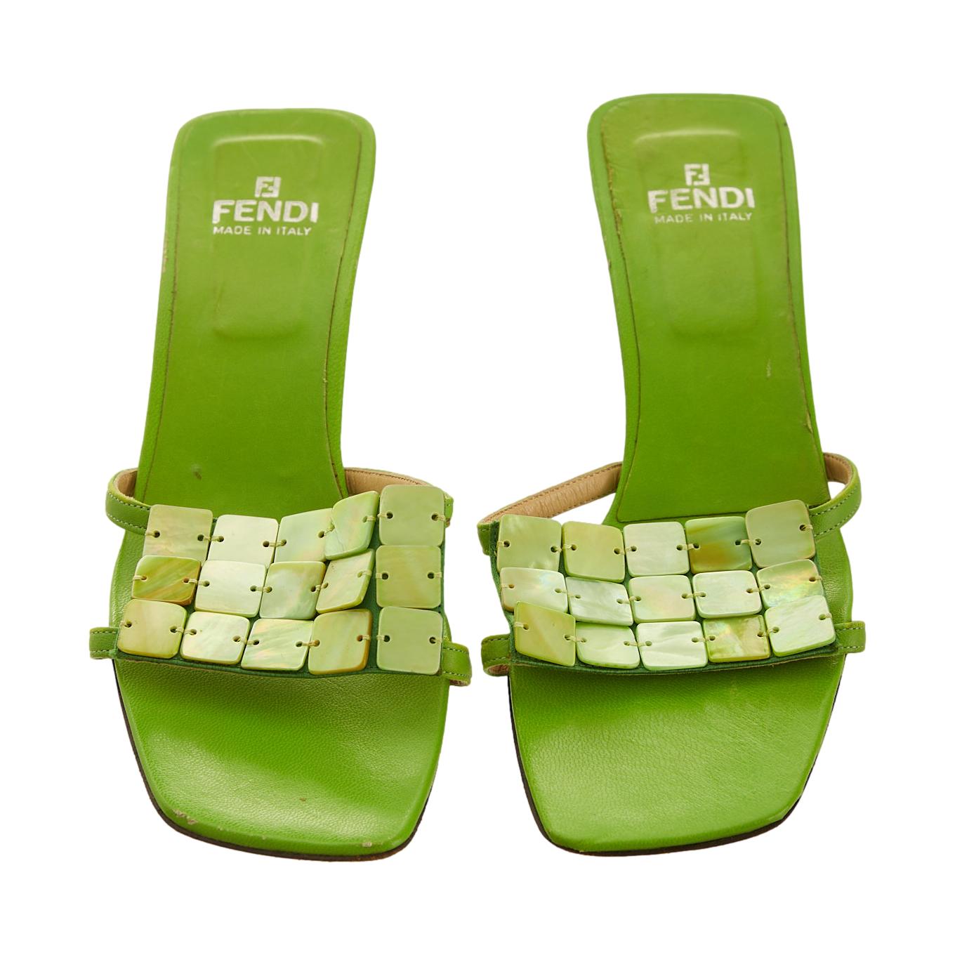 Fendi Green Shell Kitten Heels