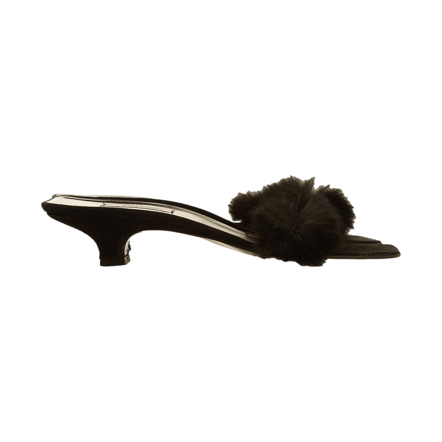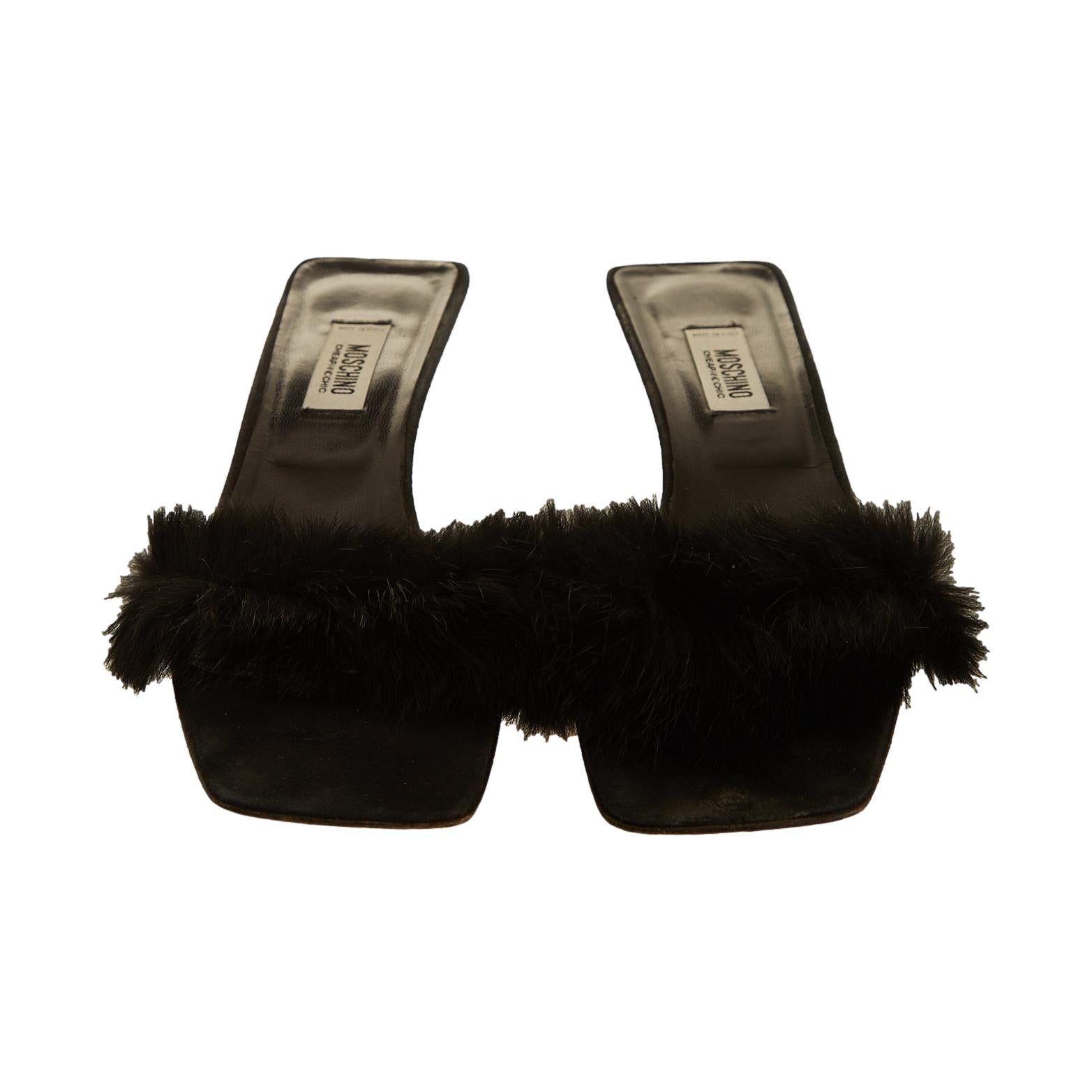 Moshino Black Fur Kitten Heels