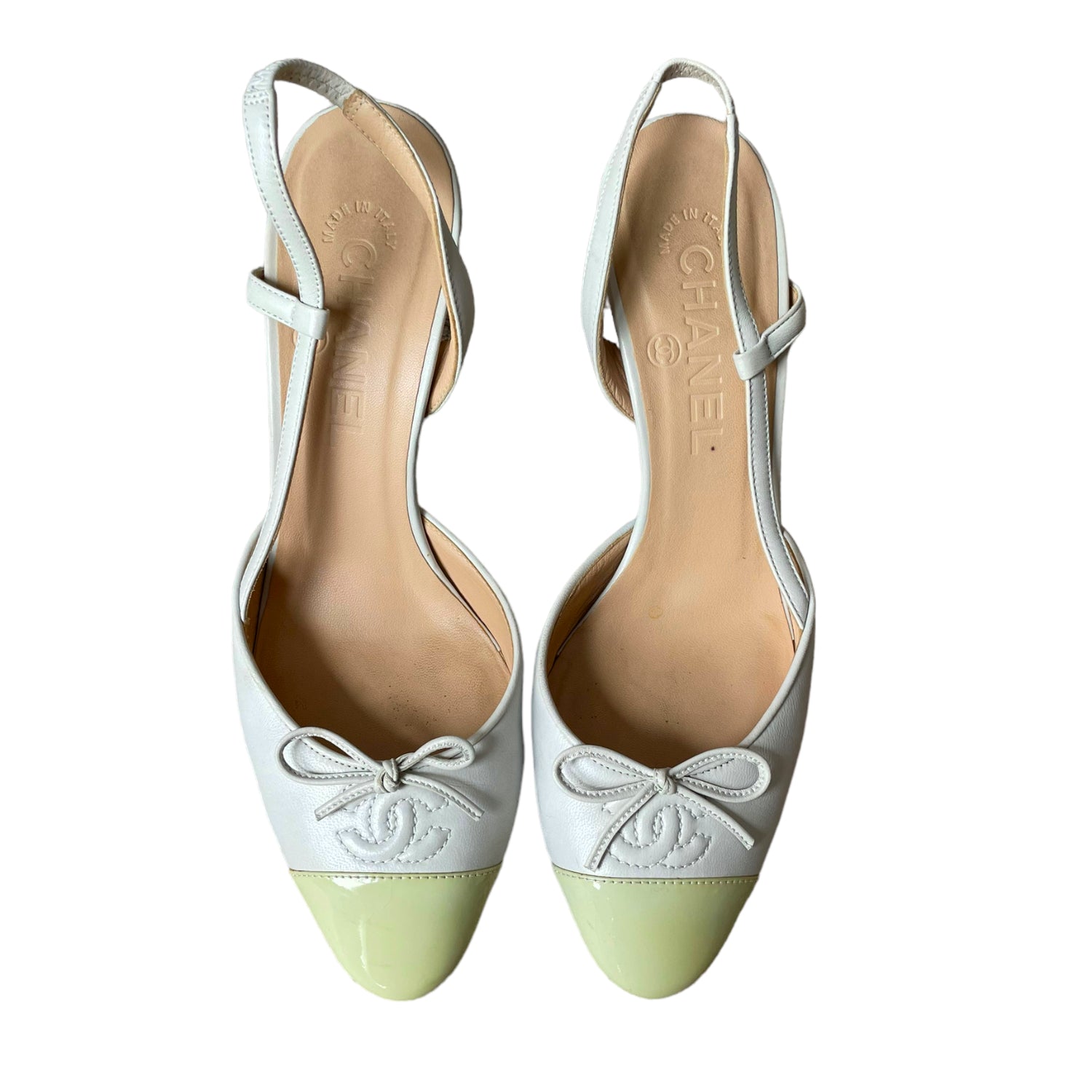 Chanel Two Tone Logo Slingback Heels