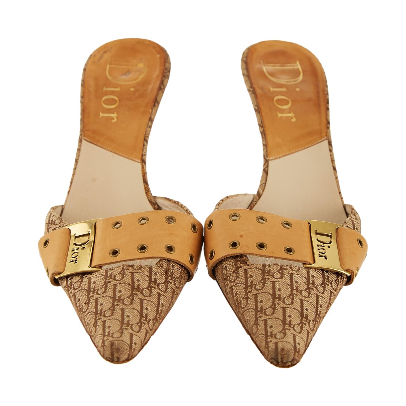 Dior Brown Logo Grommet Heels