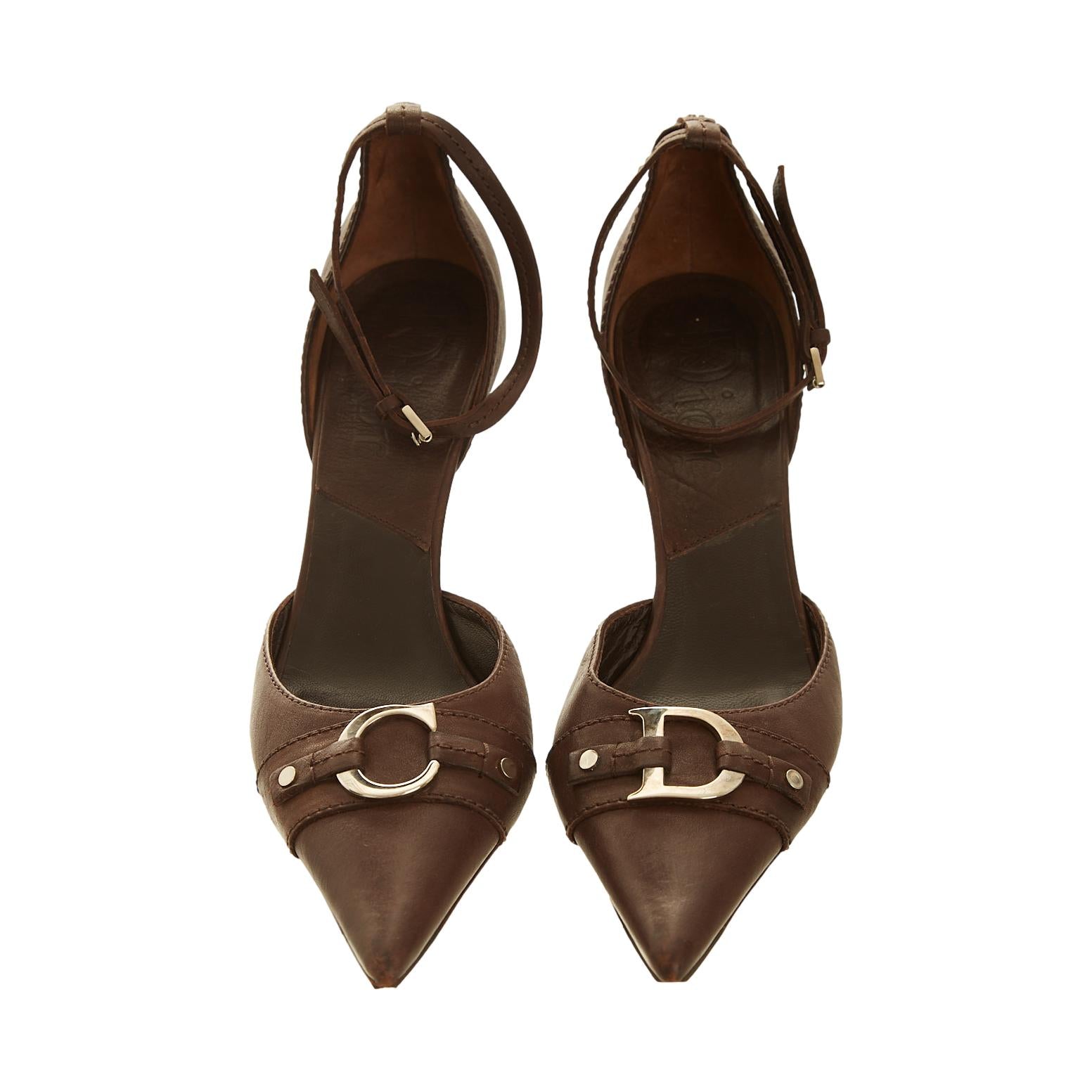 Dior Brown Leather Logo Heels