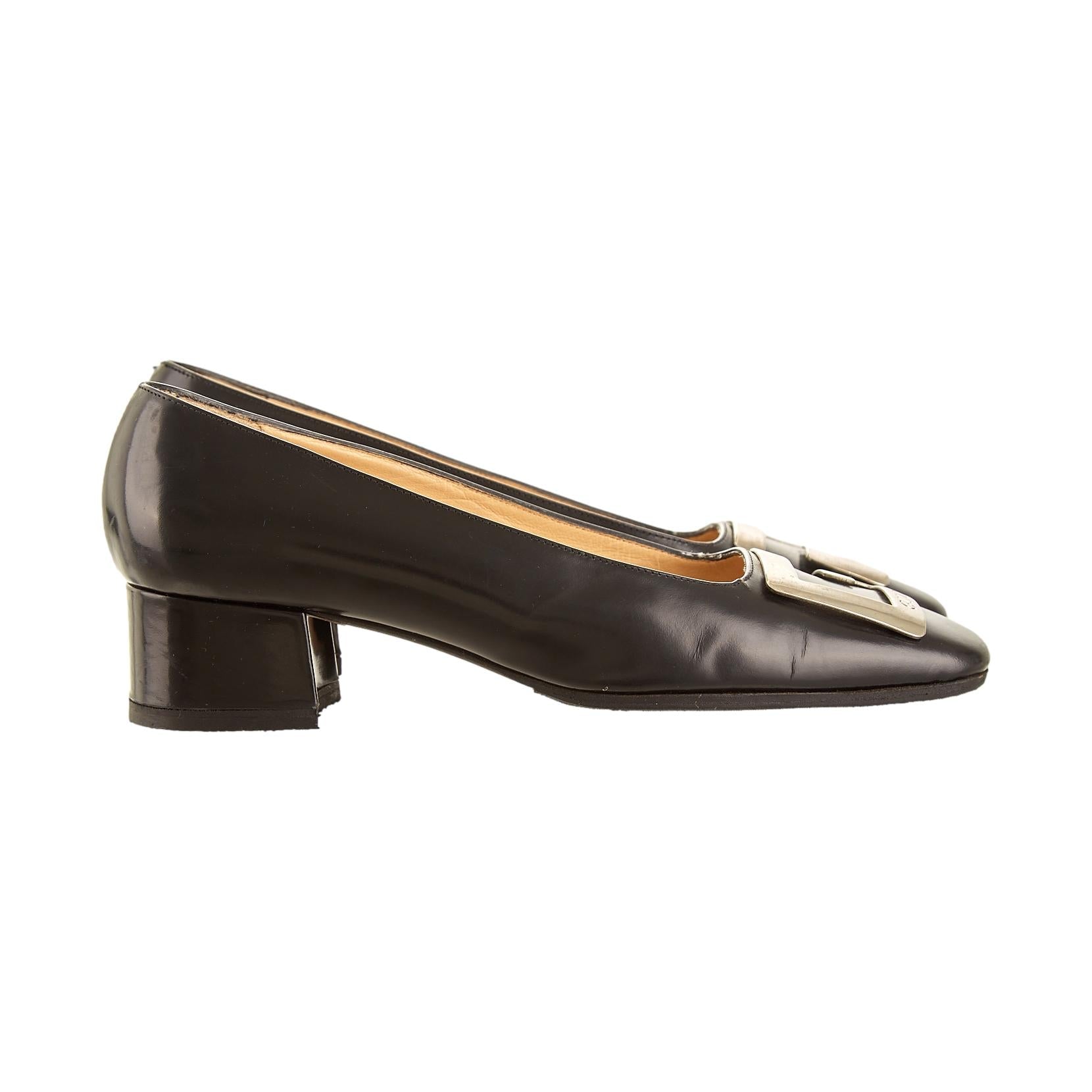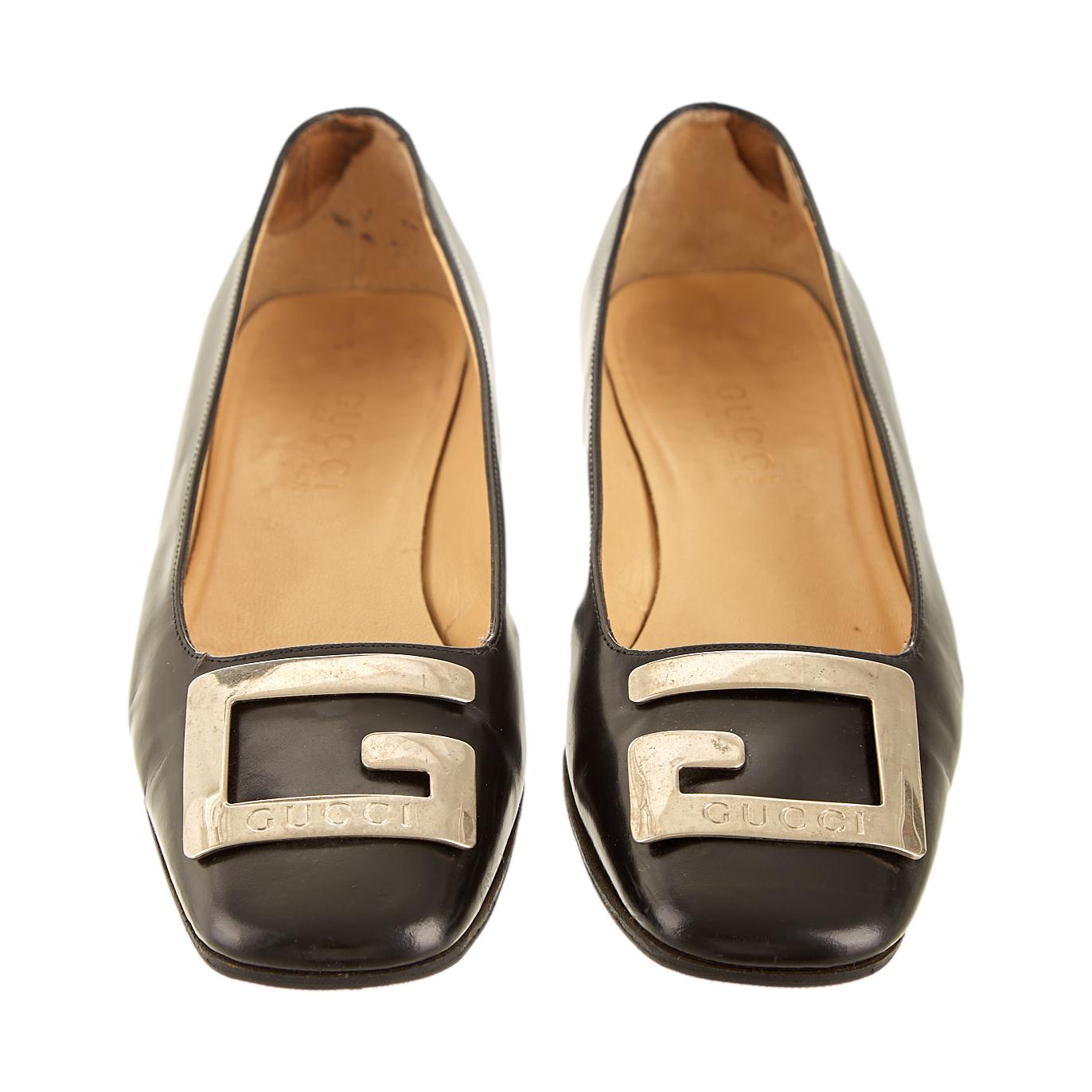 Gucci Black Leather Logo Heels