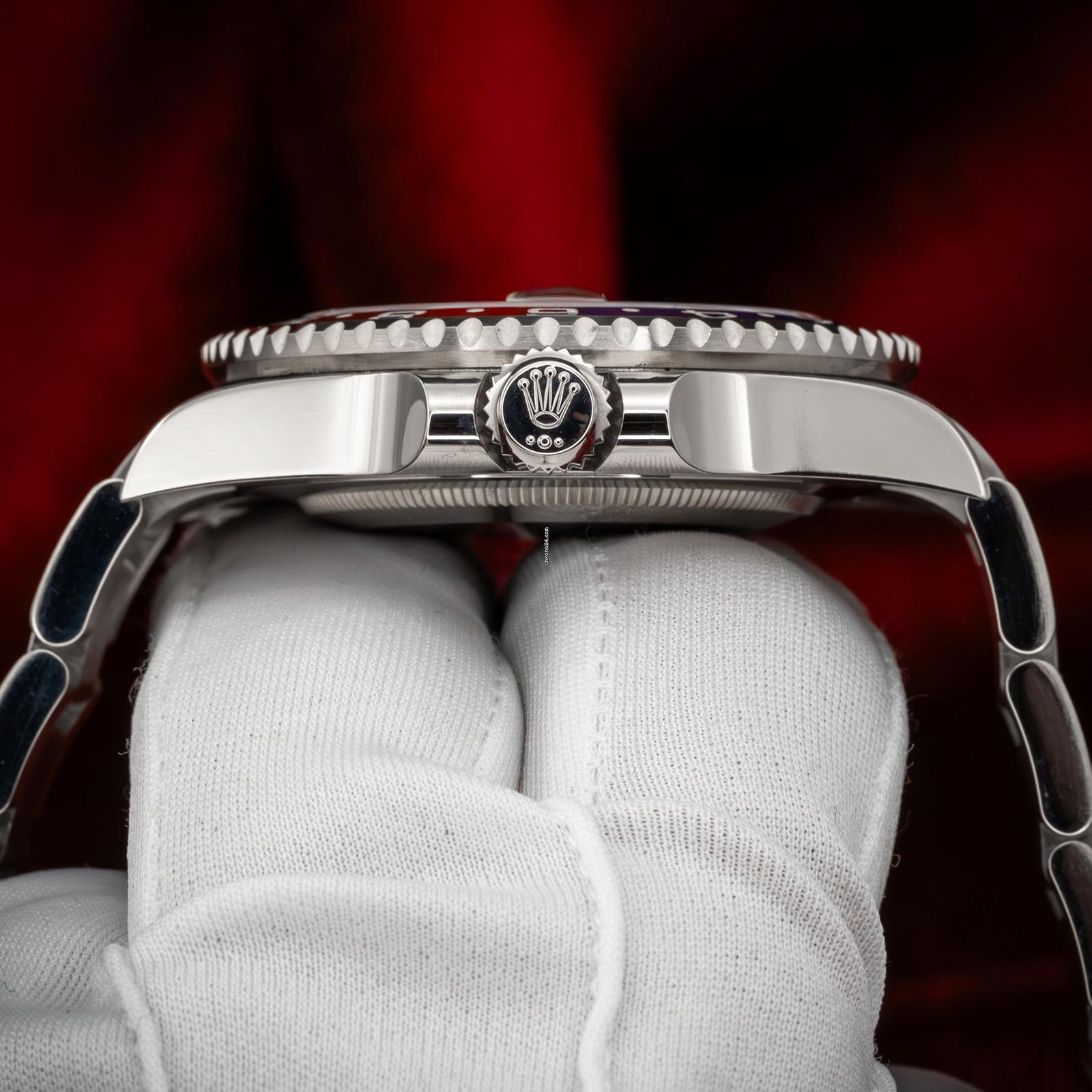 In addition to conventional hour, minute and seconds hands, the GMT-Master II features an arrow-tipped hand, which circles the dial once every 24 hours, as well as a bidirectional rotatable 24-hour graduated bezel.