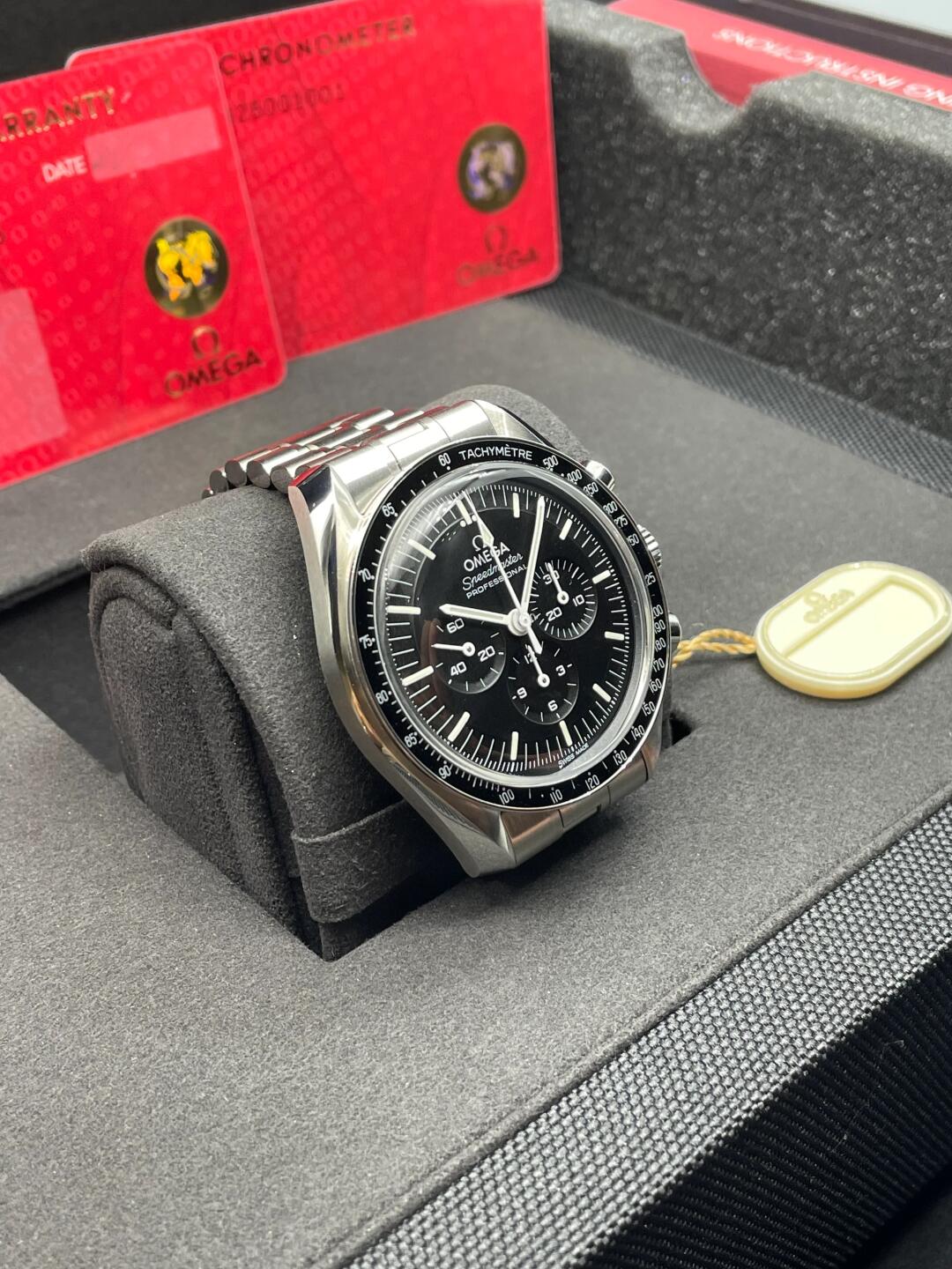- Inspired by the 4th generation Speedmaster style worn on the moon
