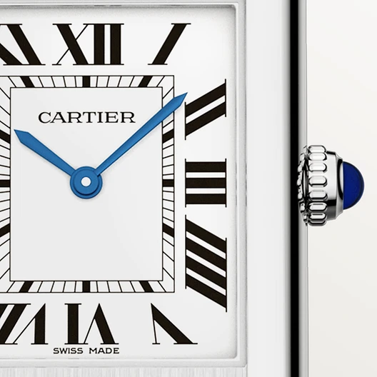 The Tank was first made popular by Louis himself. This icon features a carefully considered design with flat vertical brancards and a sapphire cabochon.